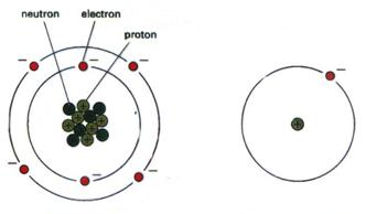 האטומים נבדלים אחד מהשני במספר הפרוטונים שלהם. כל חומר ומספר הפרוטונים שלו – מכאן נובעות תכונותיו. האלקטרונים במספר שווה לפרוטונים חגים מסביבו.ראה סכמה של אטום מימן – עם פרוטון ואלקטרון אחד. ואטום של קרבון עם 6 פרוטונים ואלקטרונים |
